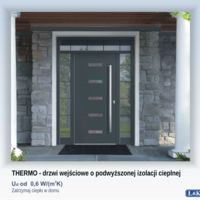 - Szklenie: 4-szybowe zespolenie Ug = 0,5 W/(m2K) grubość pianki poliuretanowej w skrzydle: 70 mm.
